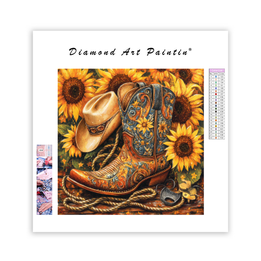 Cowboystövlar och solrosor - Diamantmålning