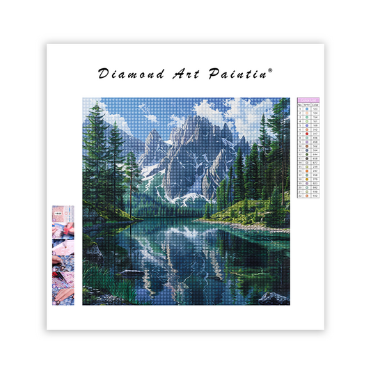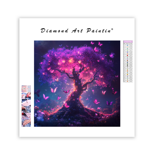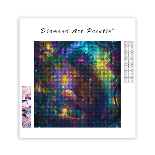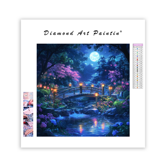 Čerešňový kvet, mesačné svetlo, horská krajina - Diamantmålning