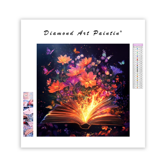 Blomstrande magisk bok - Diamond Painting