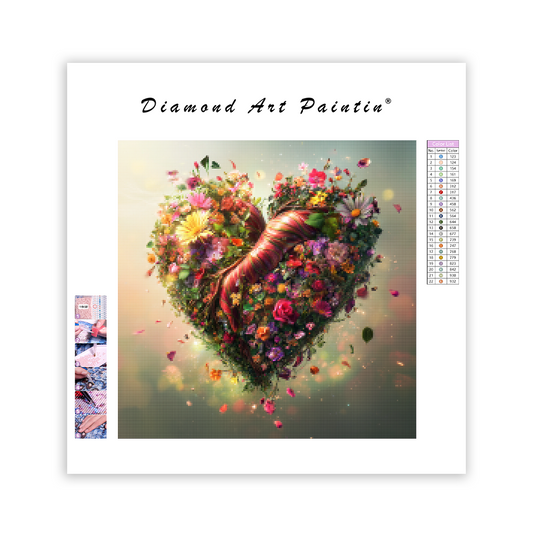 Blommande hjärta - Diamantmålning