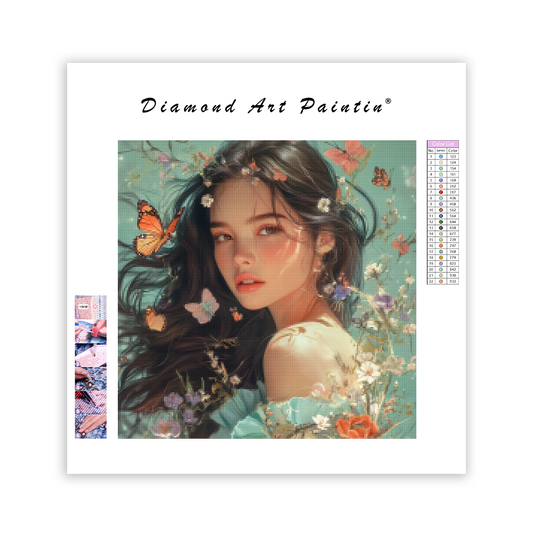 Blomfjärilsflicka - Diamantmålning