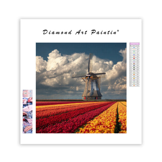 Väderkvarn i tulpanfält - Diamantmålning Målning