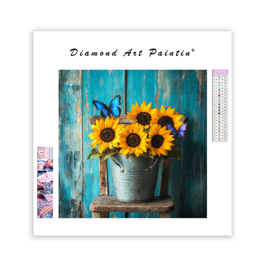 Solrosor på en trästol - Diamantmålning