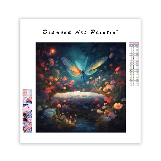 Mystisk trollslända i en fantasiträdgård - Diamantmålning