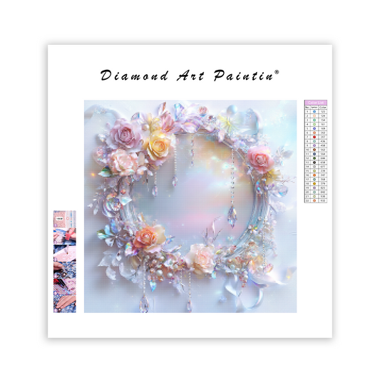 Pastellrosor och skimrande ram - Diamantmålning