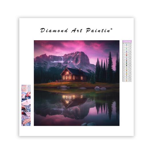 Mysig trästuga med varmt ljus - Diamantmålning