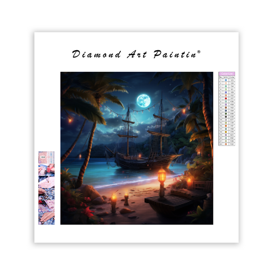 Månbelyst piratskepp - Diamantmålning