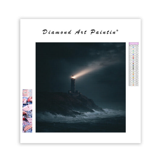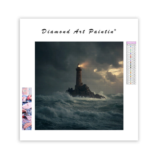 Fyr i stormigt hav - Diamantmålning