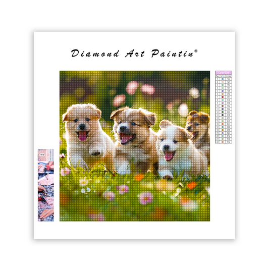 Fluffiga Valpar Som Leker - DiamantmåLning
