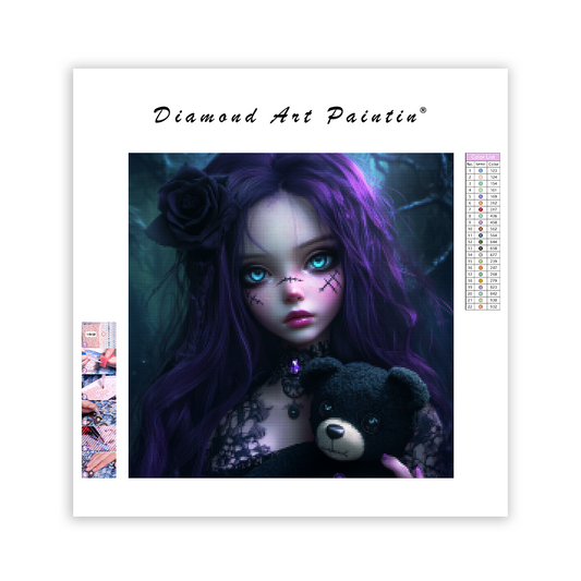 Gotisk docka med nallebjörn - Diamantmålning