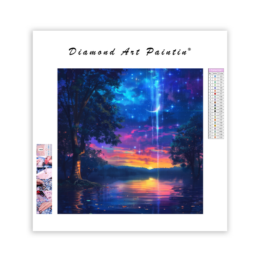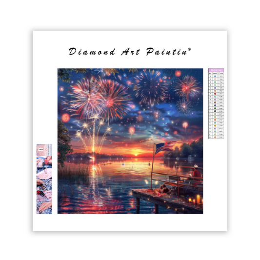 Ohňostroj nad jazerom na 4. júla - Diamantmålning