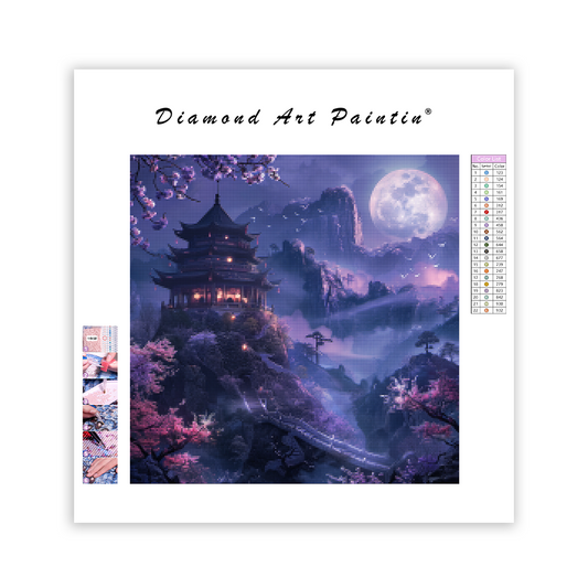 Fialová mesačná pagoda - Diamantmålning