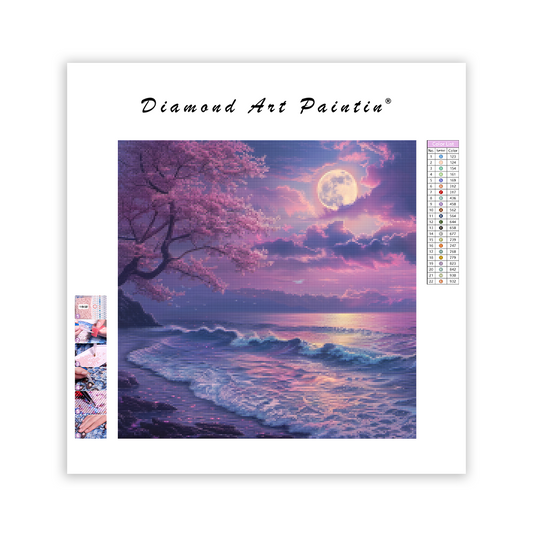 Sakura, mesačný svit, more - Diamantmålning
