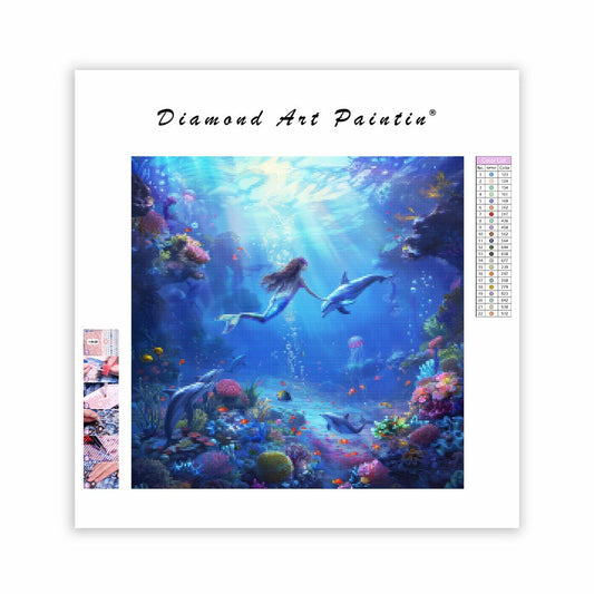 Sjöjungfru under vattnet med maneter - Diamantmålning