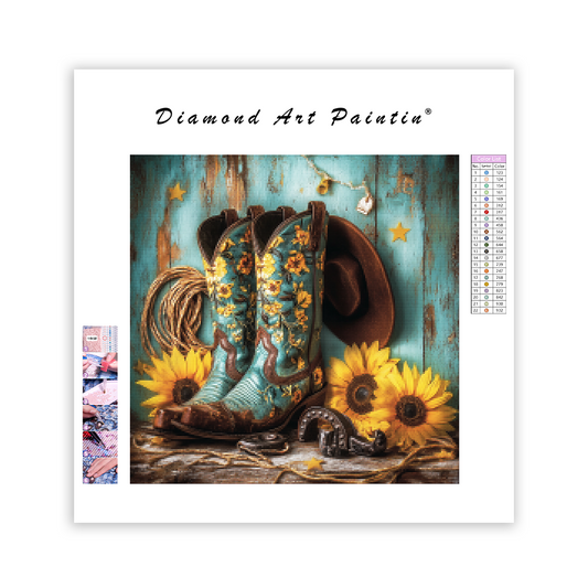 Western Cowboy-utrustning med solrosor - Diamantmålning