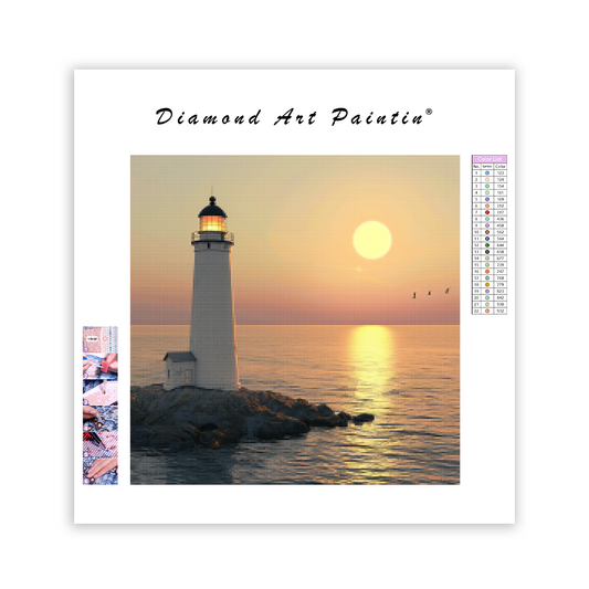 Výhľad na západ slnka pri majáku - Diamantmålning
