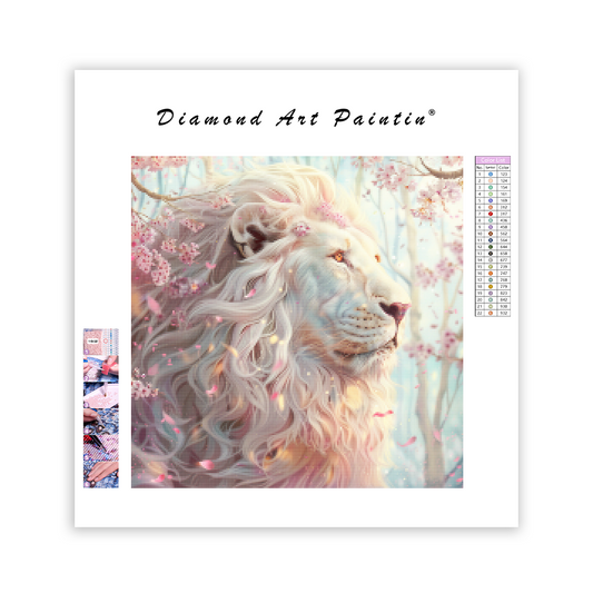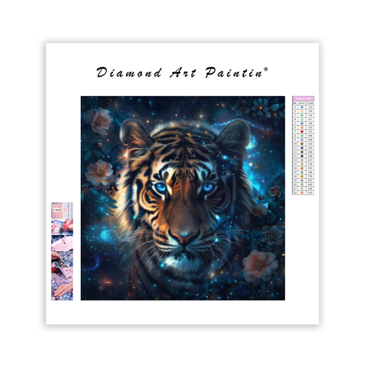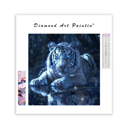 Biely tiger s oranžovými kvetmi - Diamantmålning