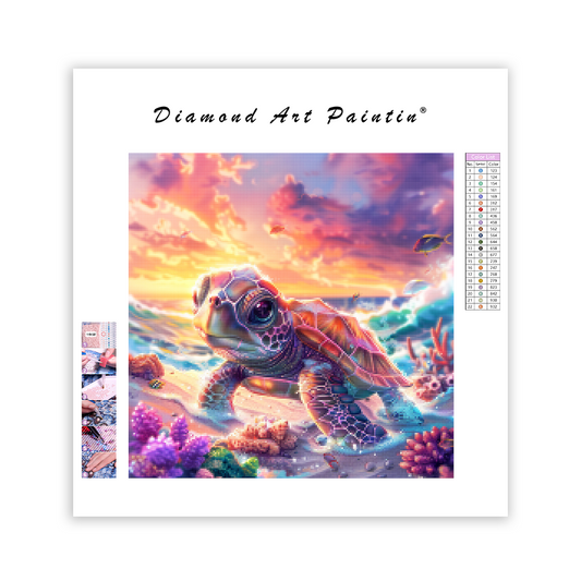 Dúhové mláďa korytnačky na pláži - Diamantmålning