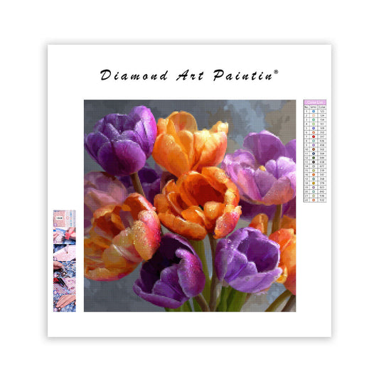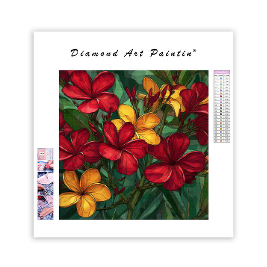 Röda och Gula Tropiska Blommor - Diamantmålning