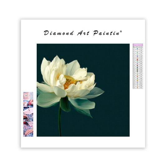 Vit Lotus på Grön Bakgrund - Diamantmålning