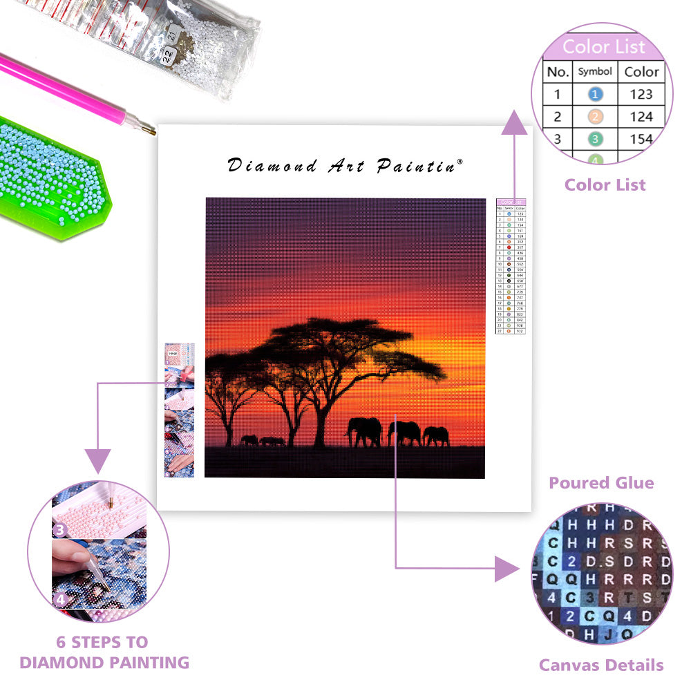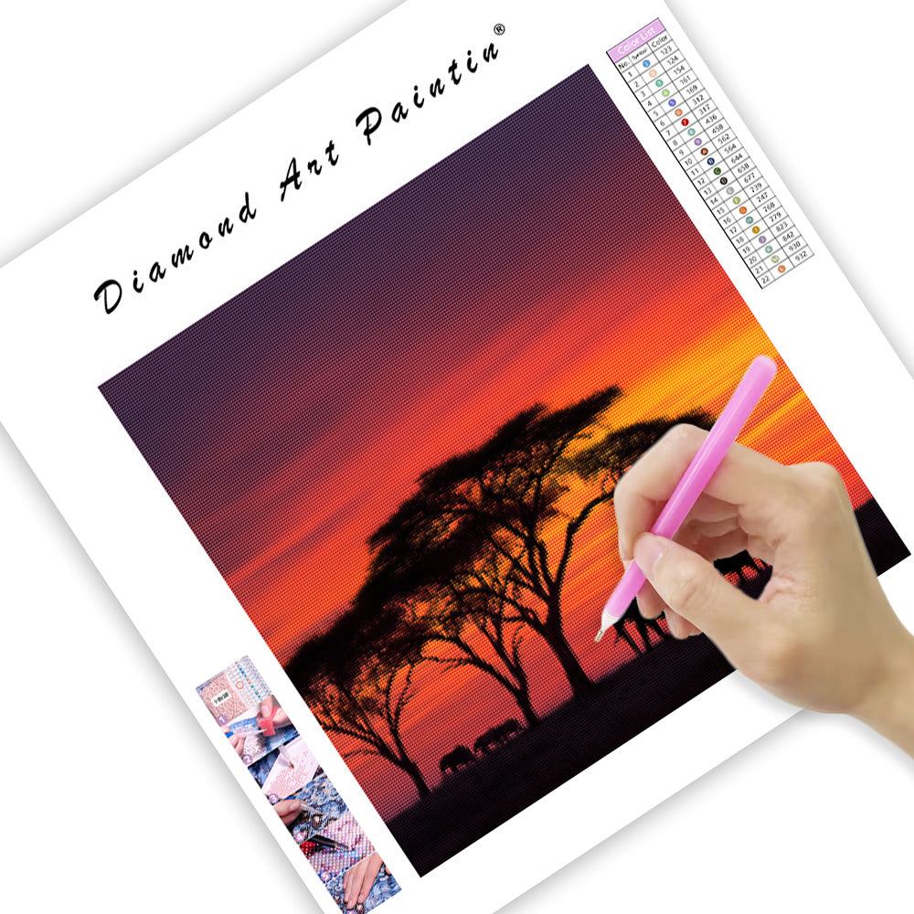 Afrikansk solnedgångssilhuett - Diamantmålning