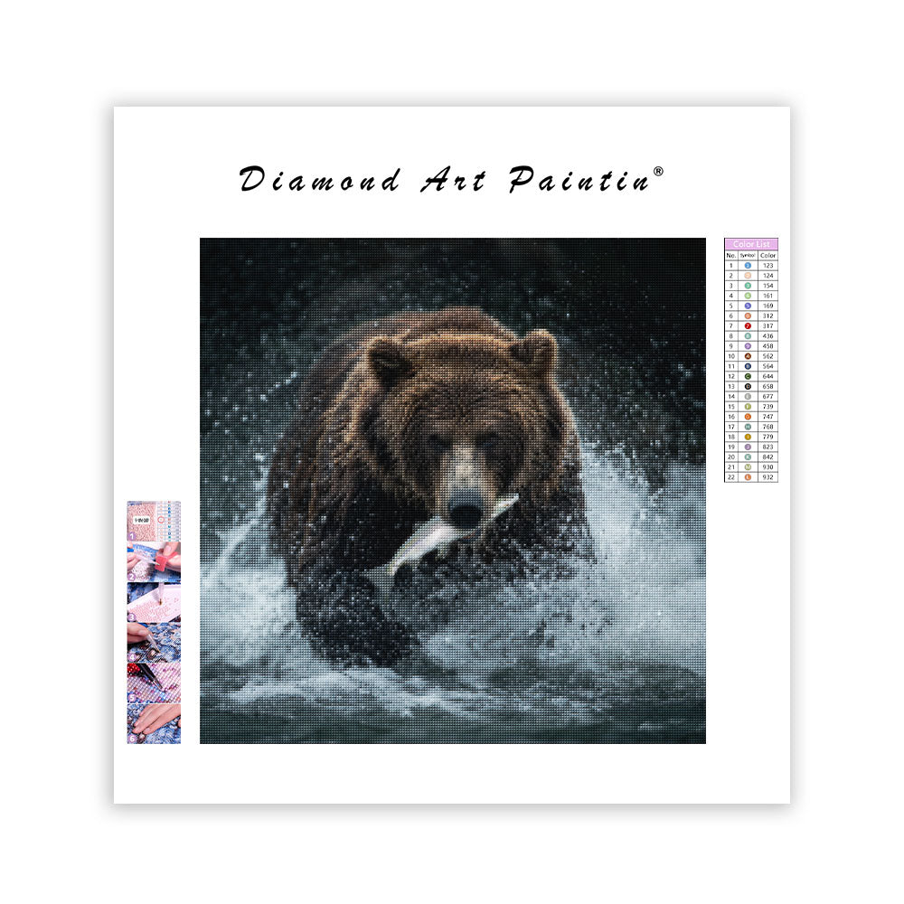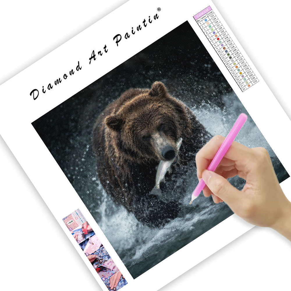 Alaskabjörn som fångar lax - Diamantmålning