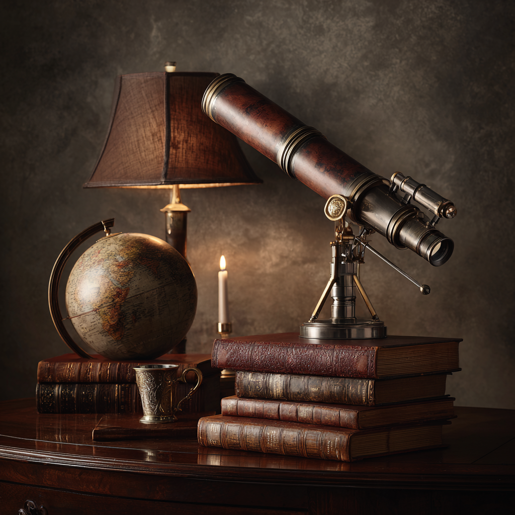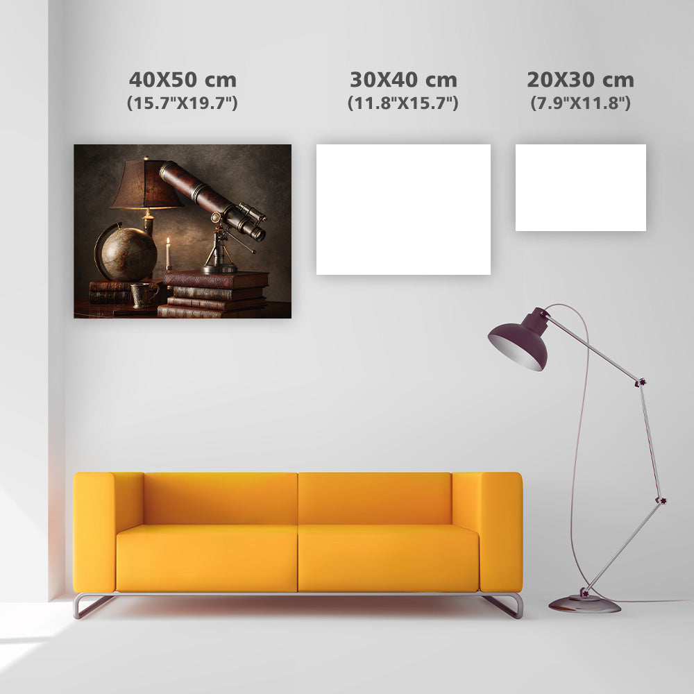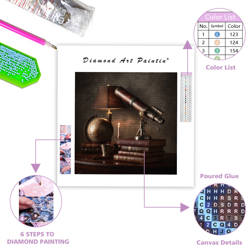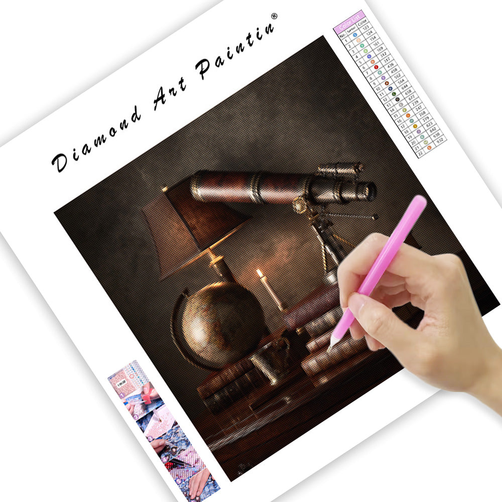 Antik jordglob och teleskop - Diamantmålning