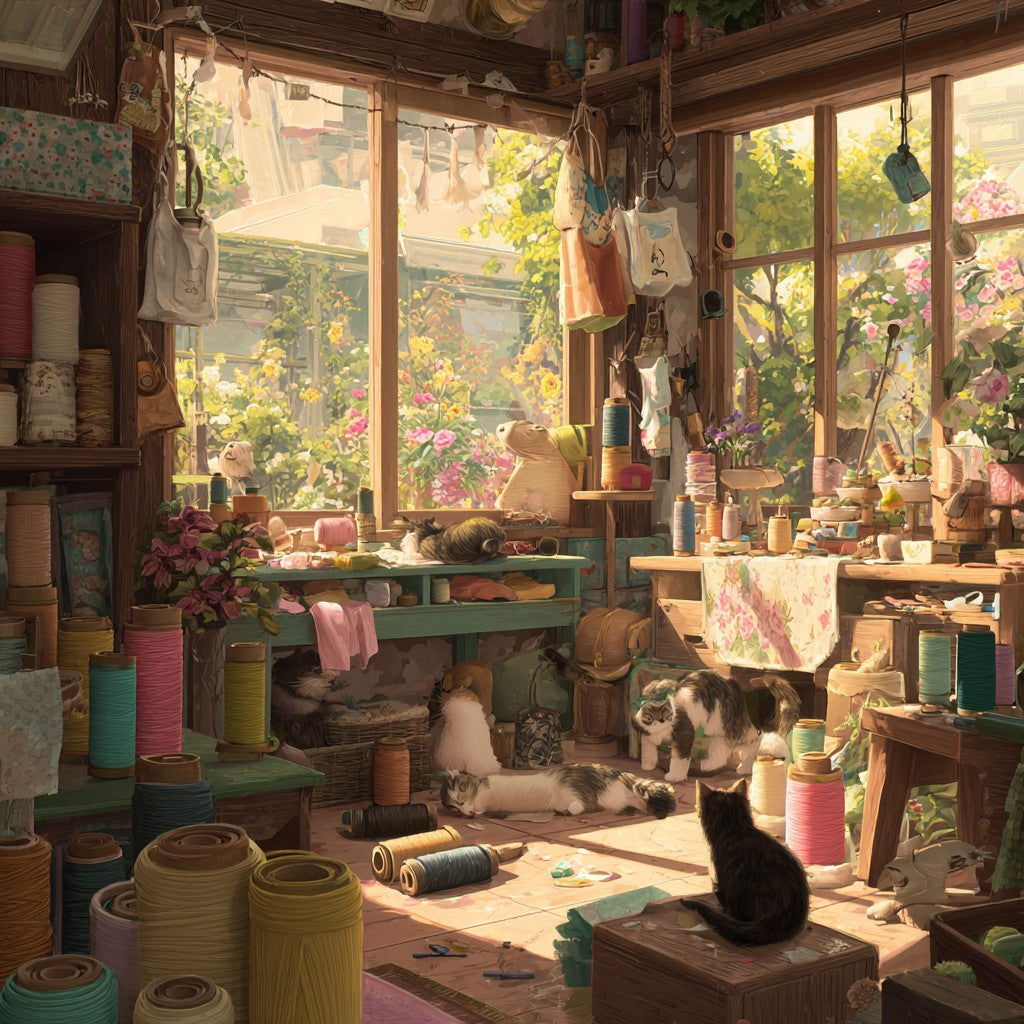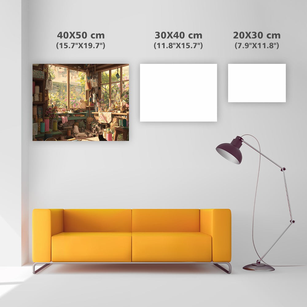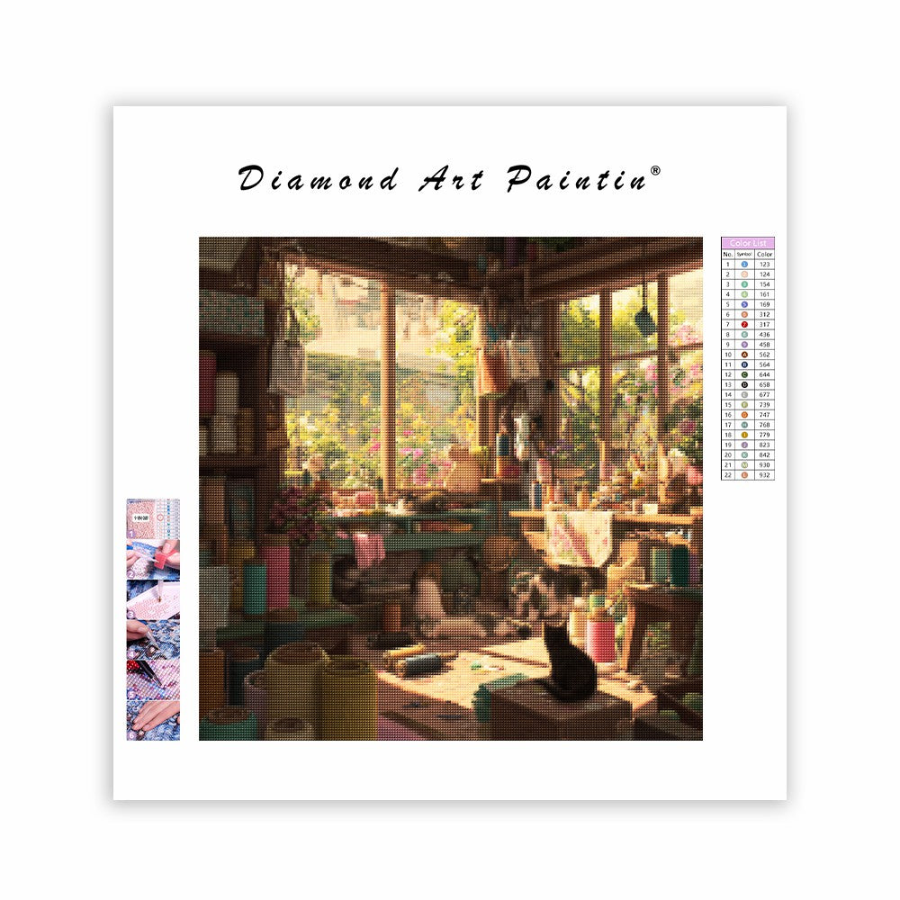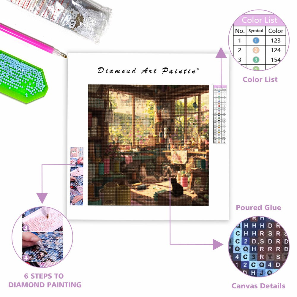 Katter i hantverksateljé - Diamantmålning
