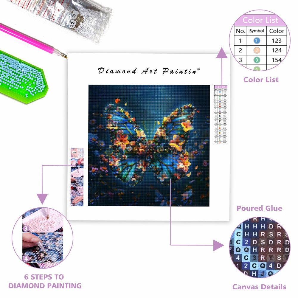Blommiga vingar - Diamantmålning
