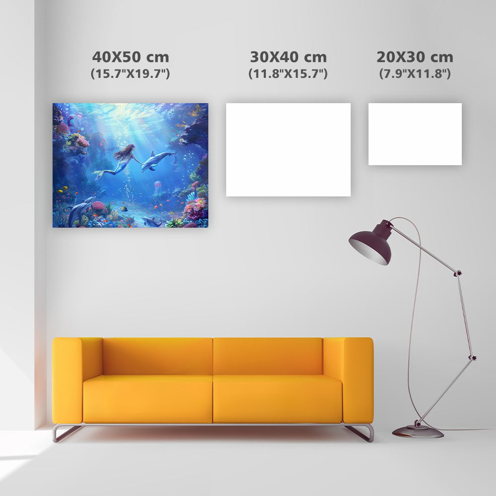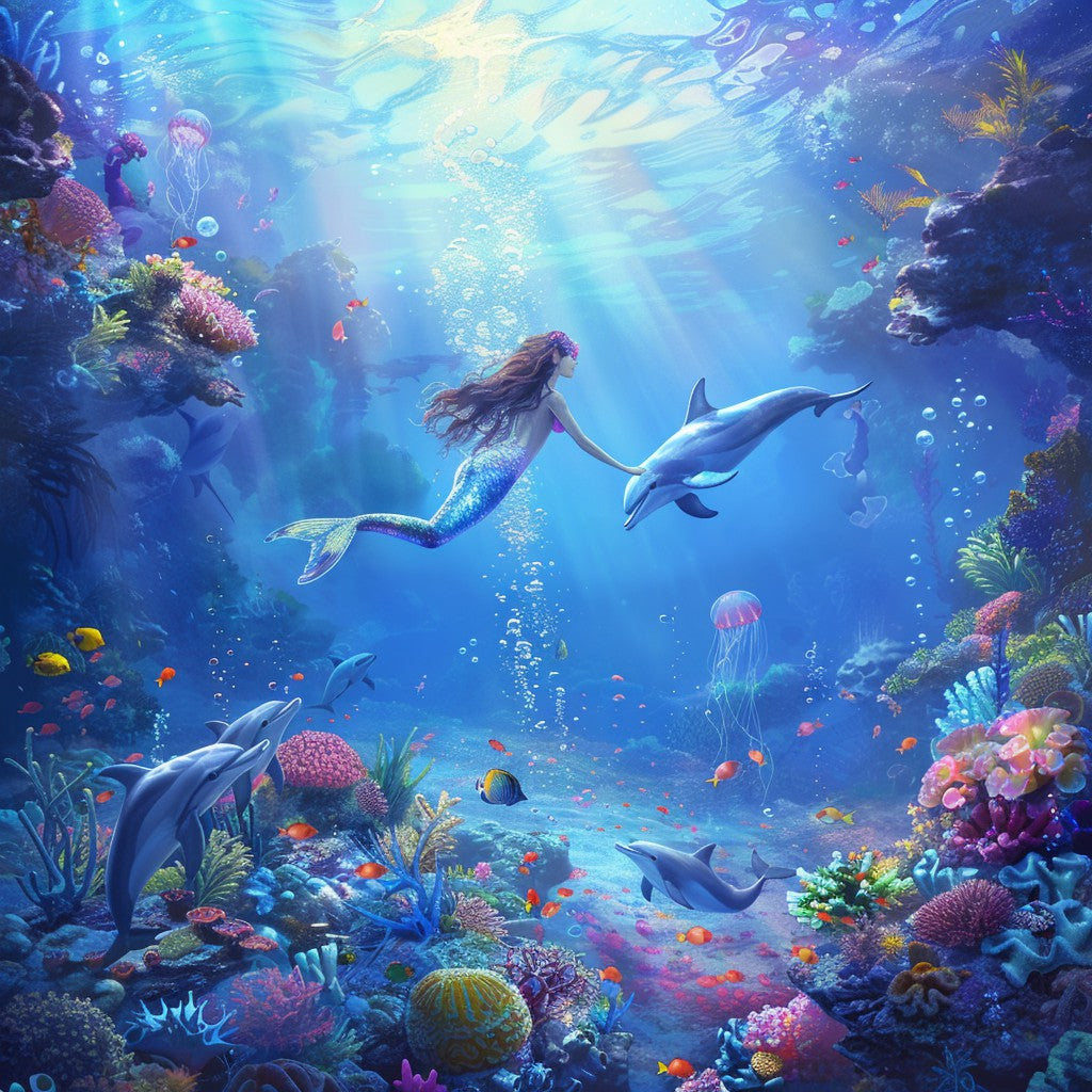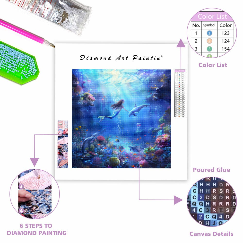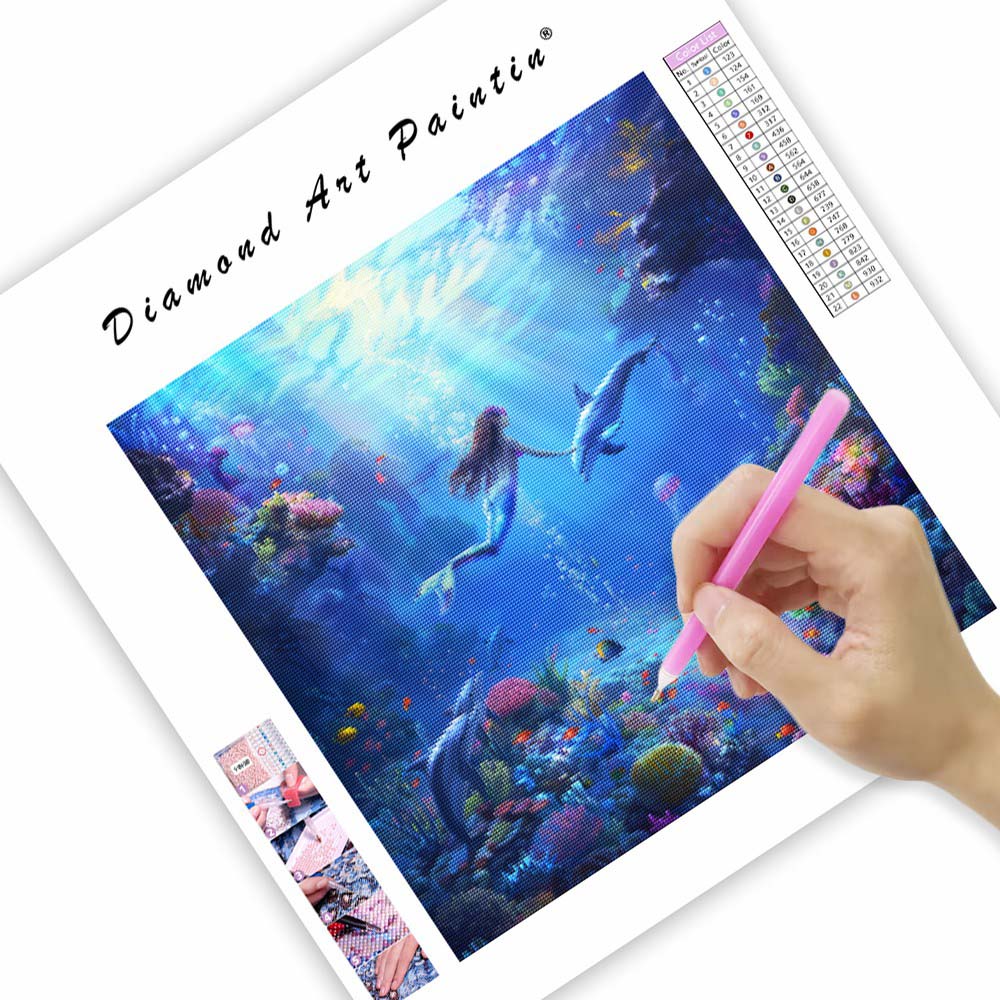 Sjöjungfru under vattnet med maneter - Diamantmålning