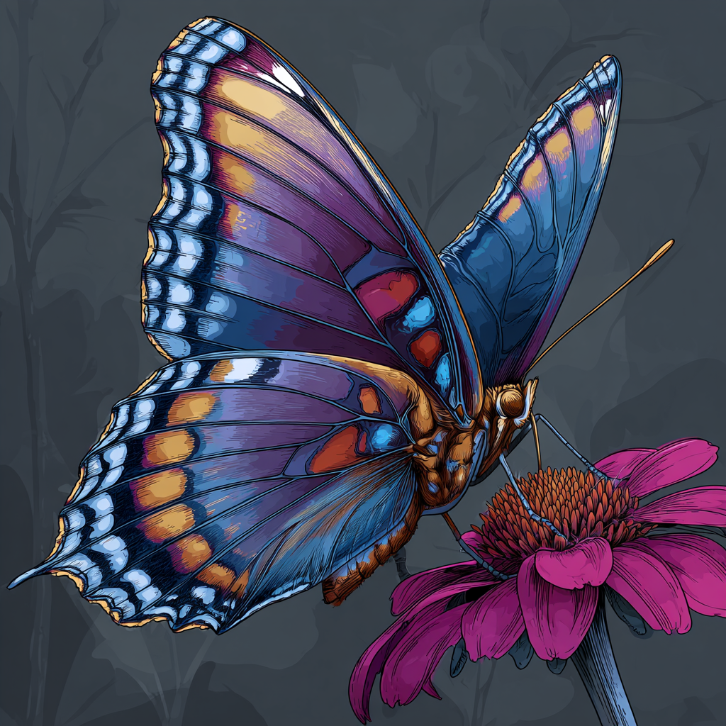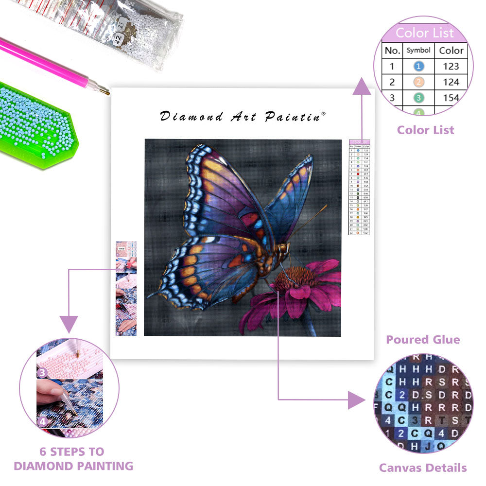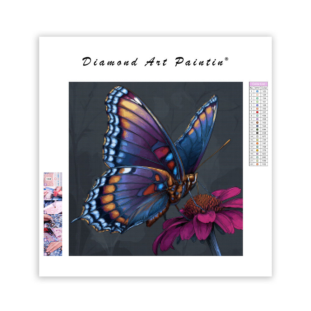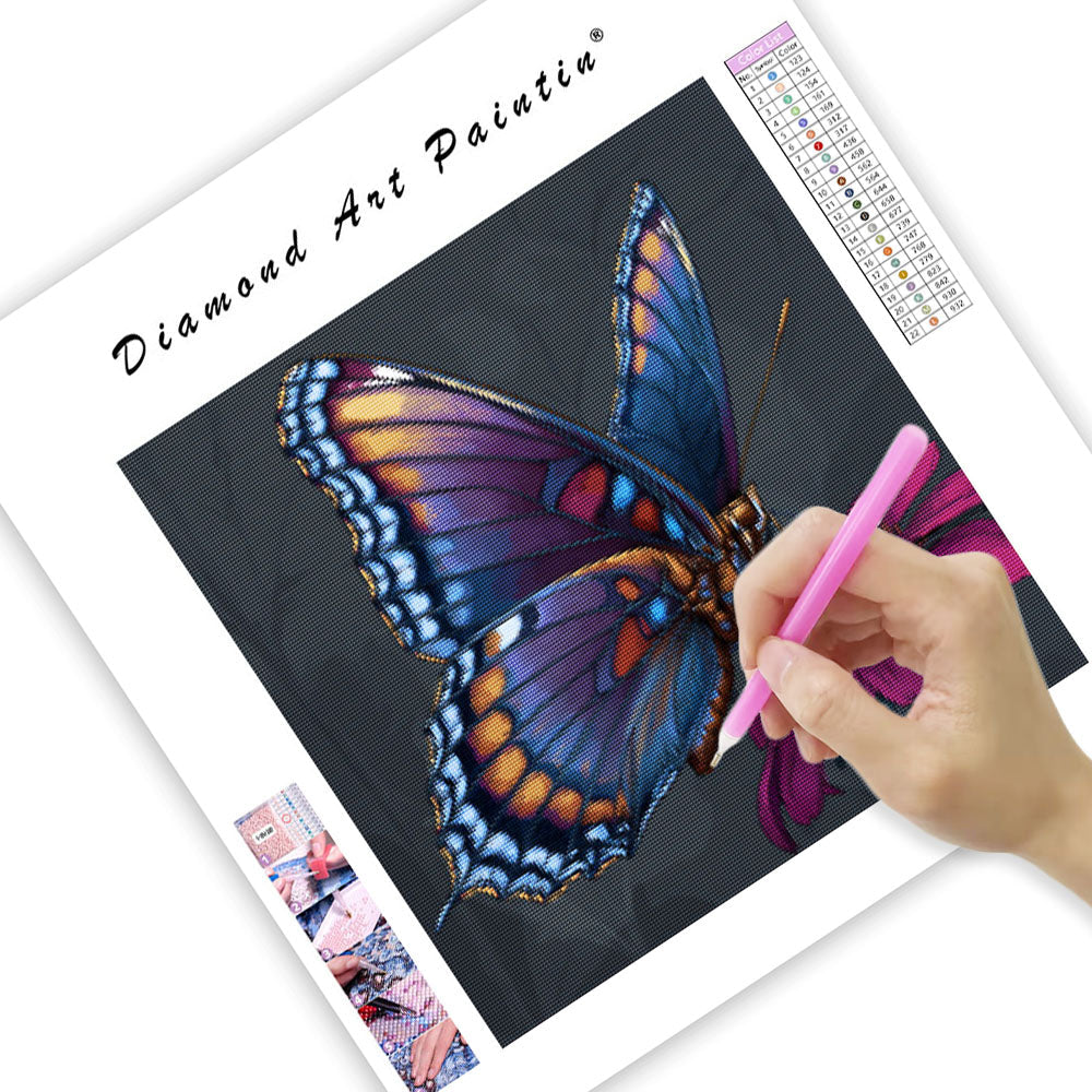 Färgglad Fjäril och Blomma - Diamantmålning