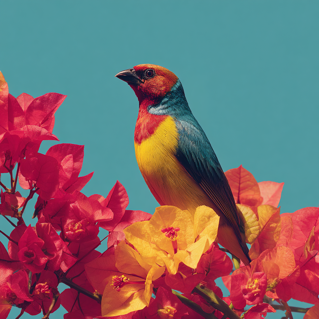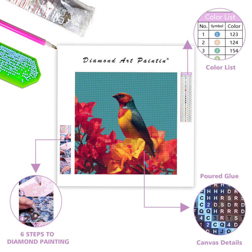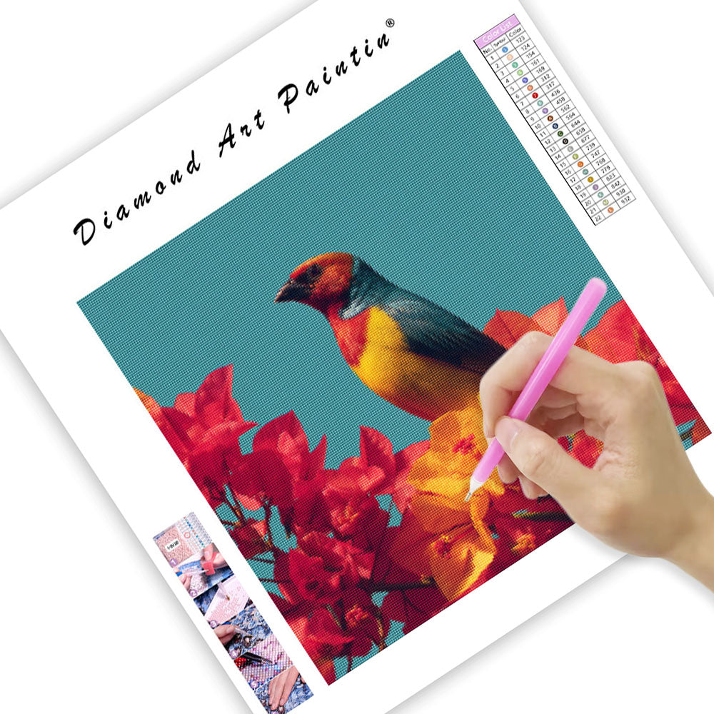Färgglad Tropisk Fågel och Blommor - Diamantmålning