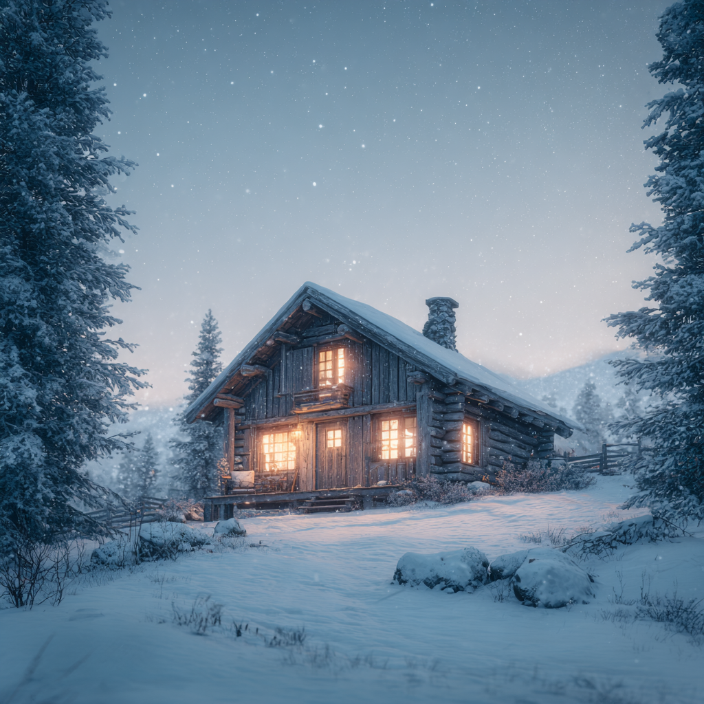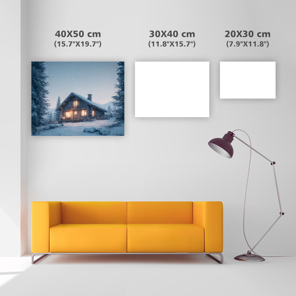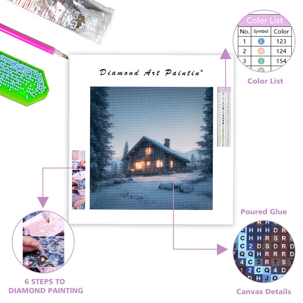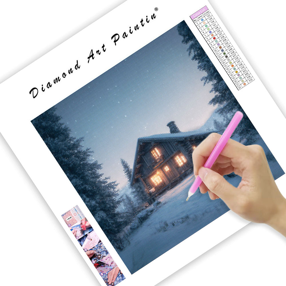 Mysig Stuga i Snön - Diamantmålning