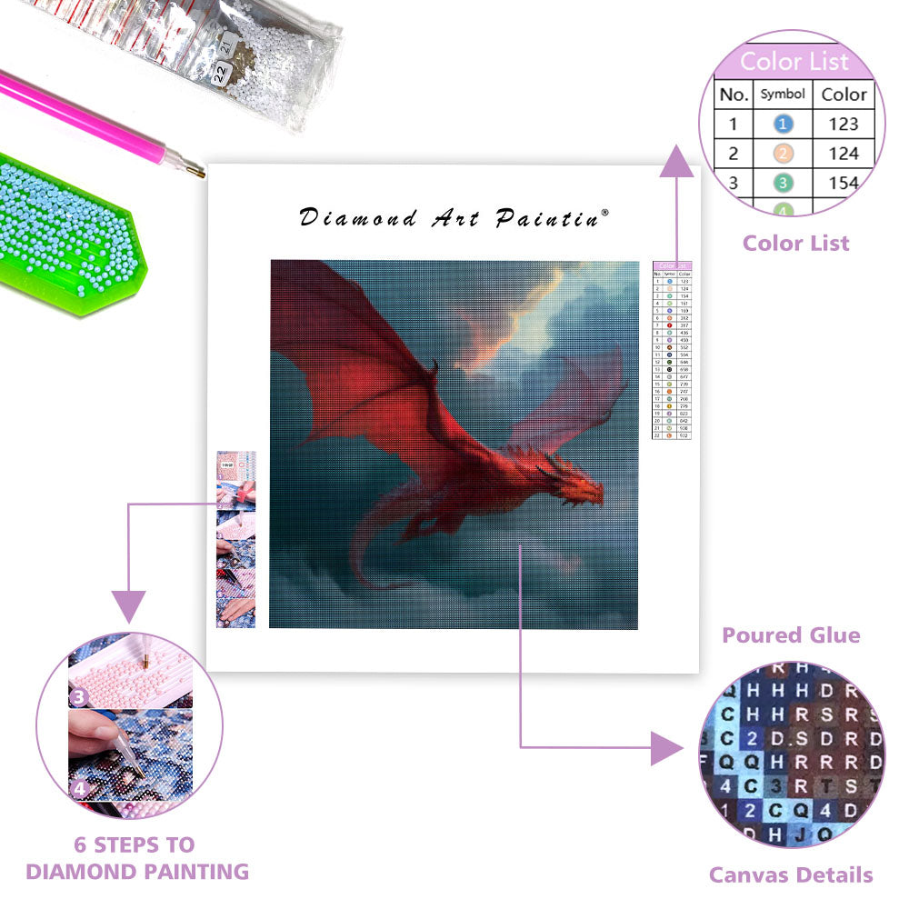 Flygande Röd Drake - Diamantmålning