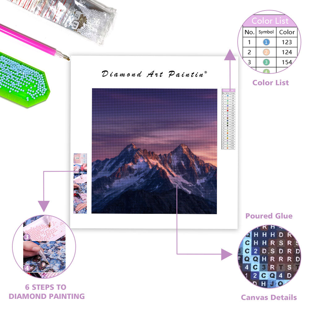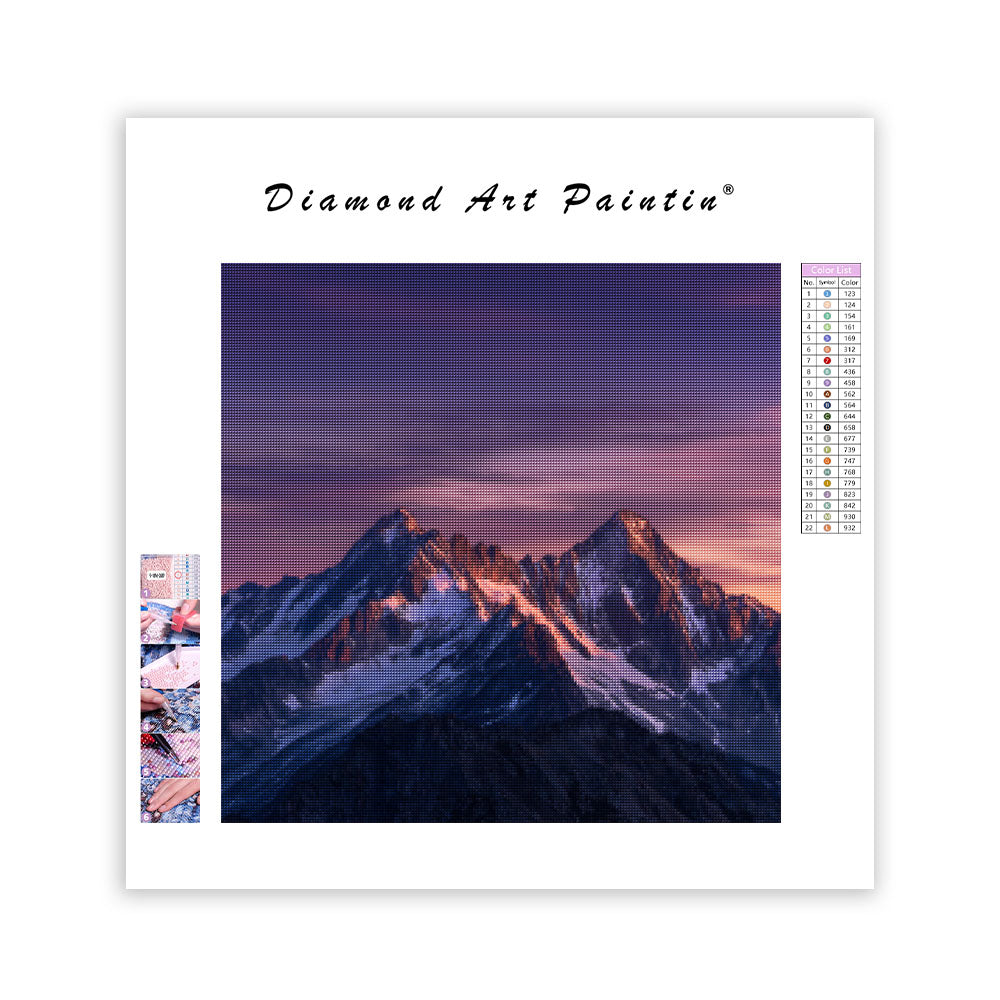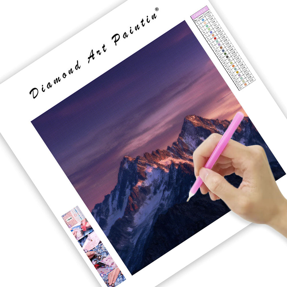 Lila Gryning och Bergssilhuetter - Diamantmålning