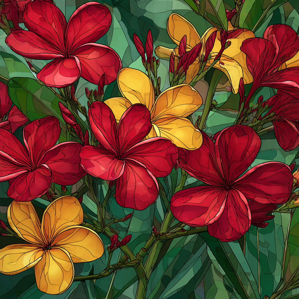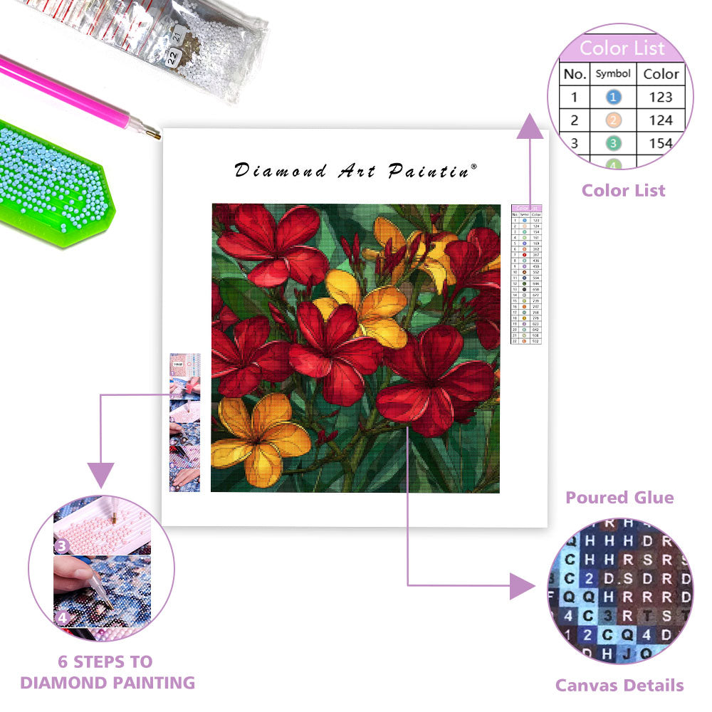 Röda och Gula Tropiska Blommor - Diamantmålning