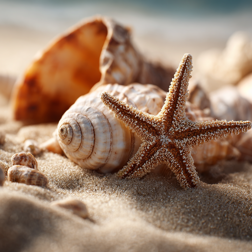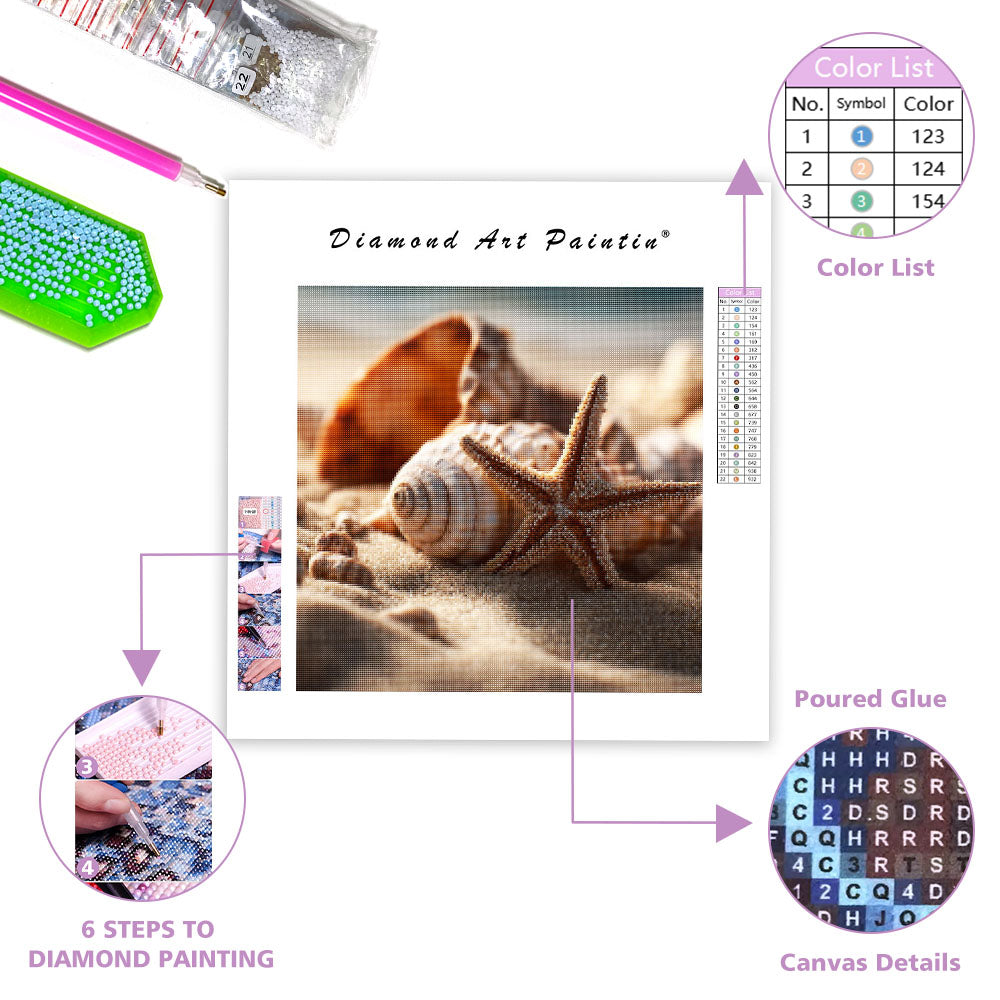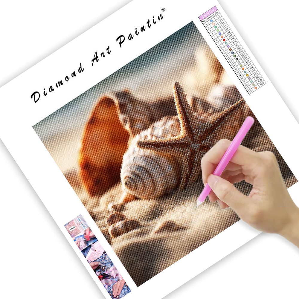 Snäckor och Sjöstjärnor på Stranden - Diamantmålning