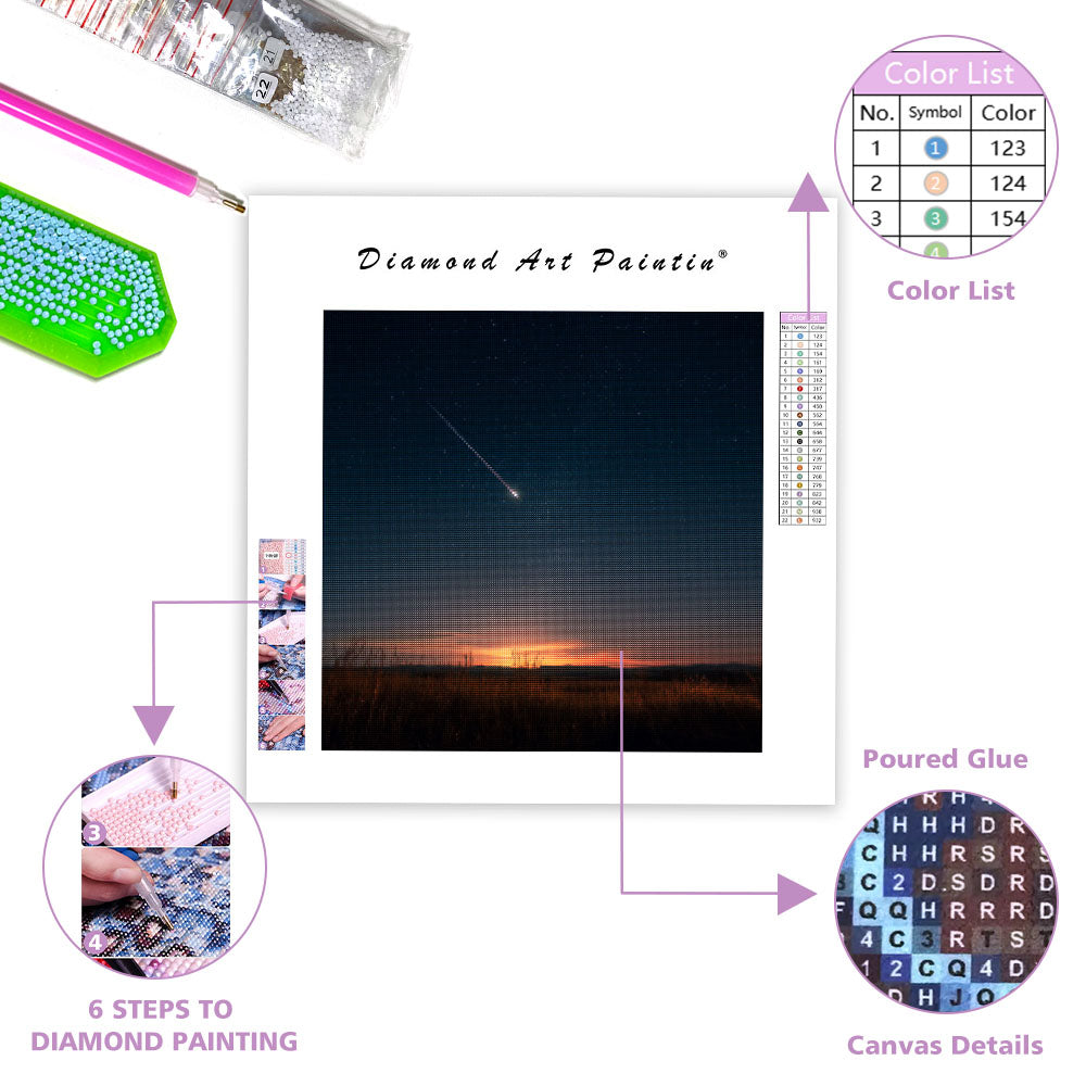 Stjärnor och Meteor på Nattens Himmel - Diamantmålning