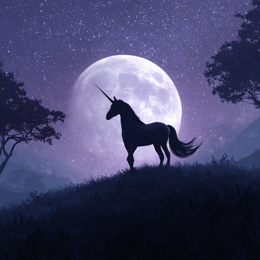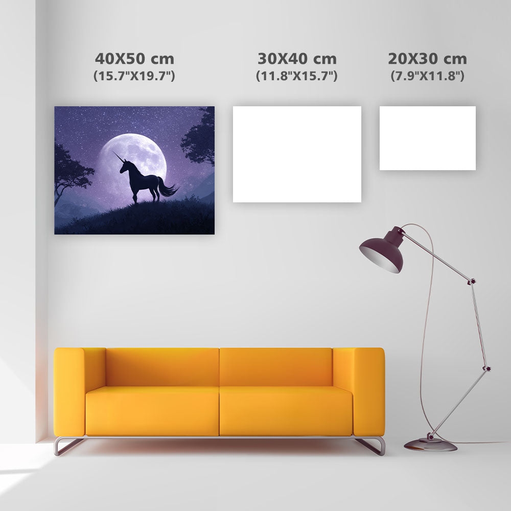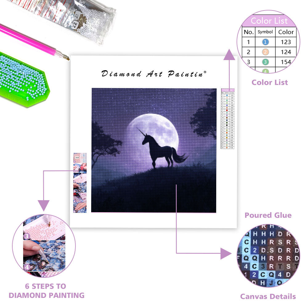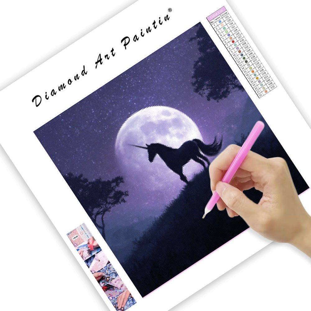 Enhörning under månen - Diamantmålning