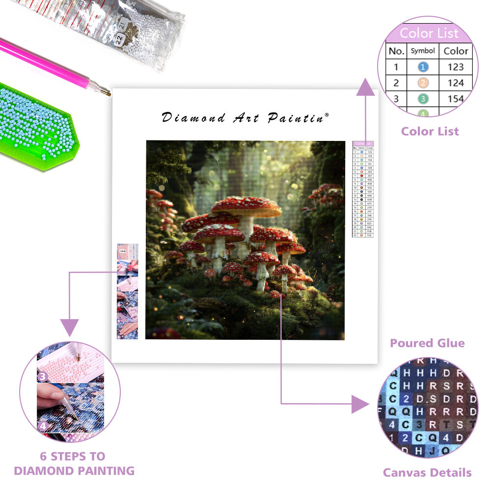 Förtrollad skogssvamp cirkel - Diamantmålning