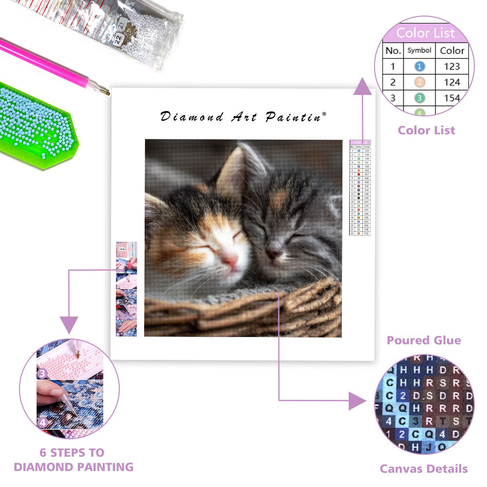 Kattungars gosiga sömn - Diamantmålning