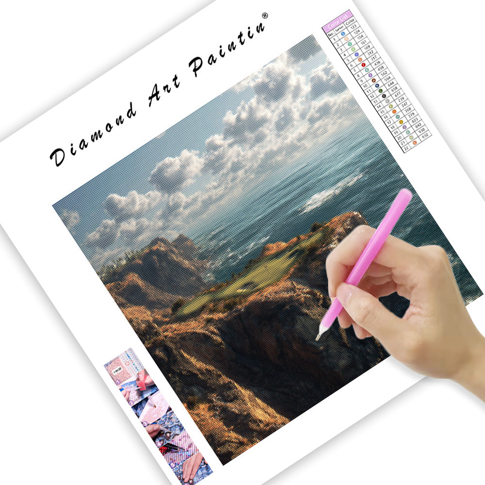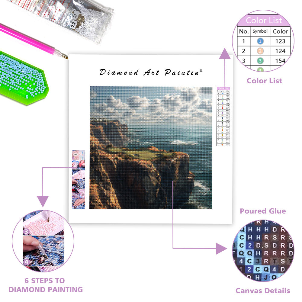 Klippside golfbana havsutsikt - Diamantmålning