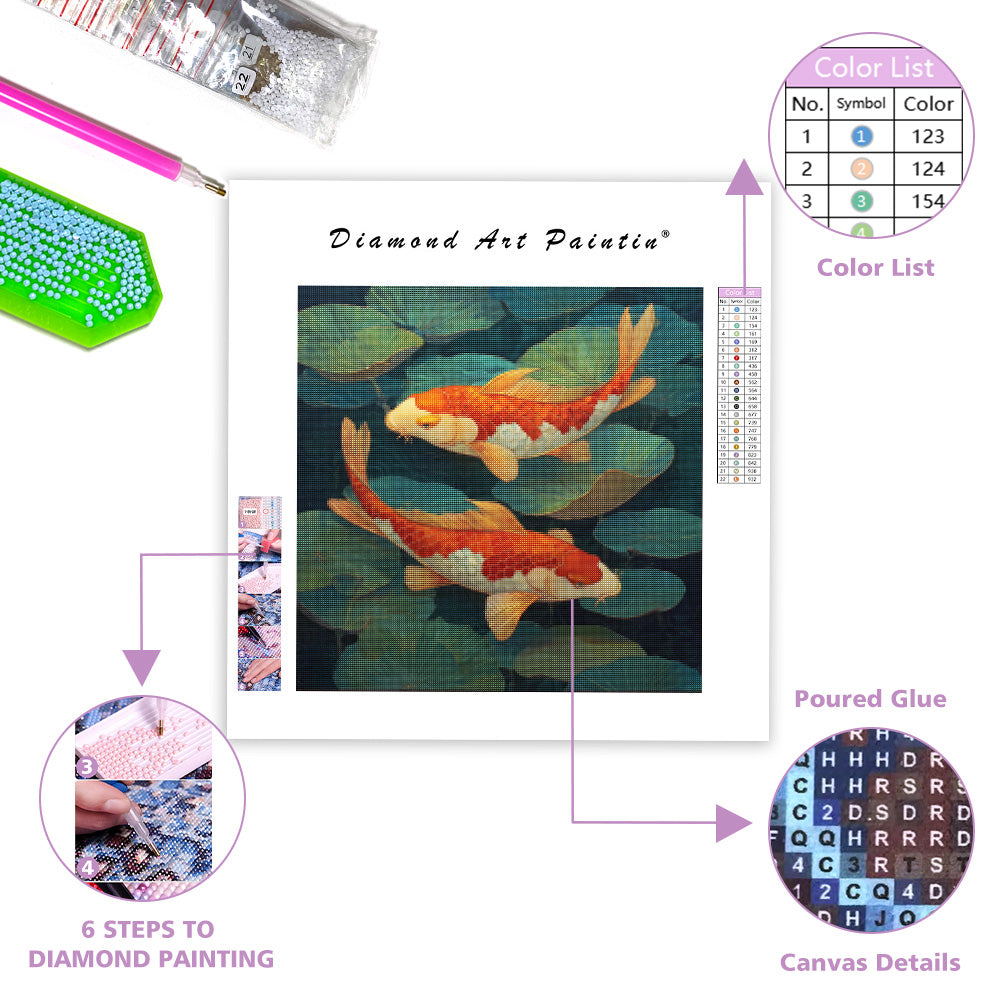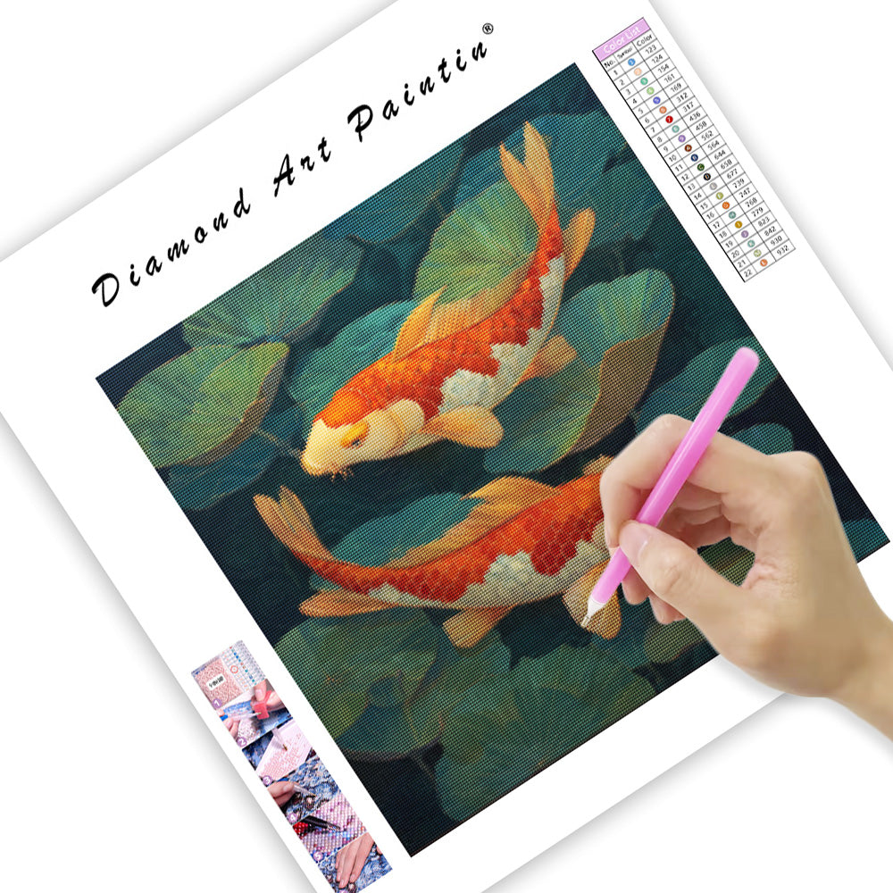 Koi i näckrosdammkonst - Diamantmålning