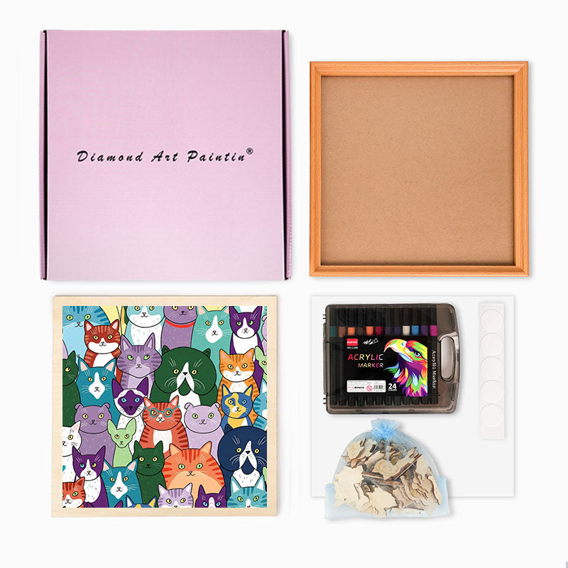 Konstiga katter - Träpussel att färglägga