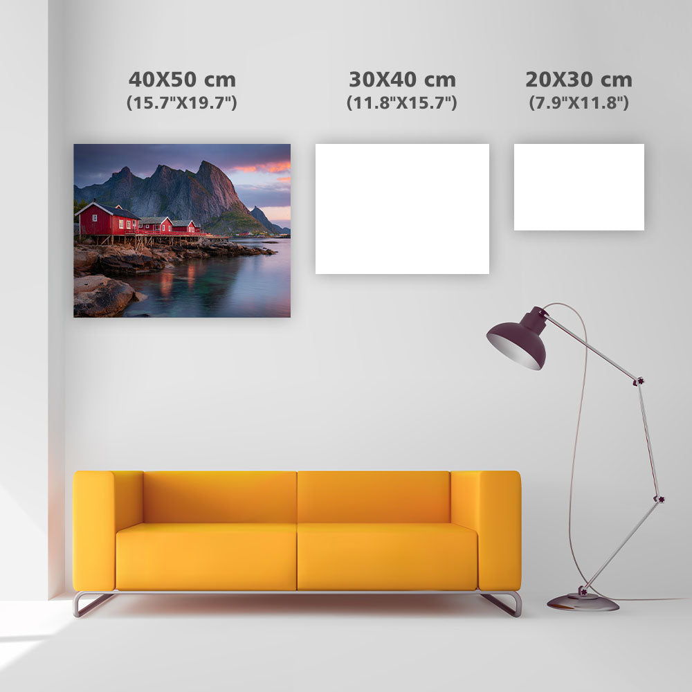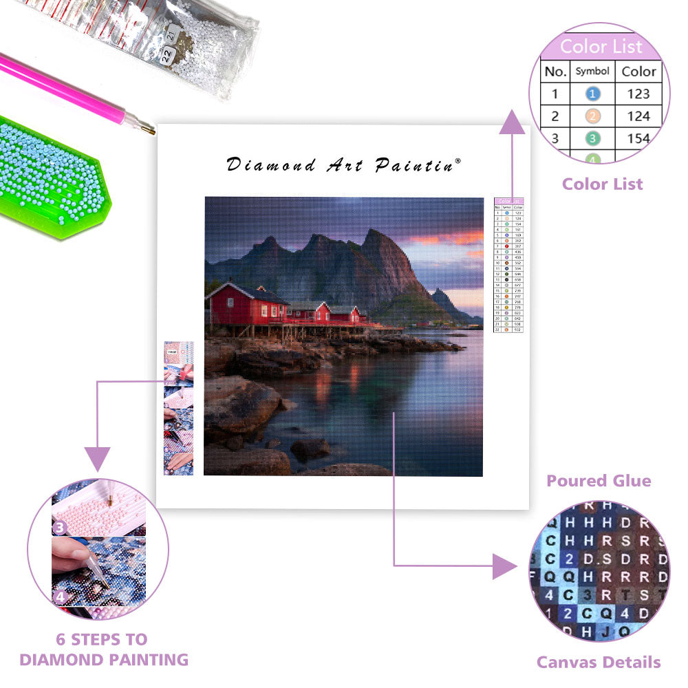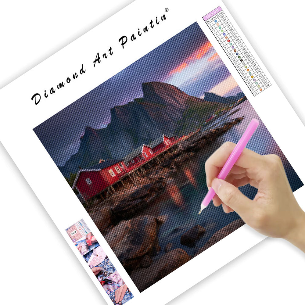 Lofoten Röda Stugor Midnattssol - Diamantmålning