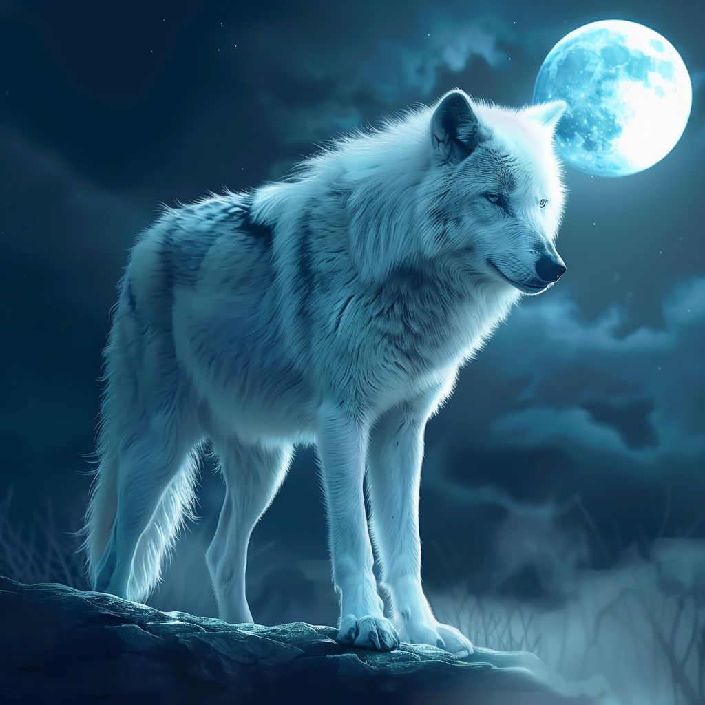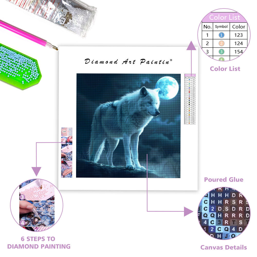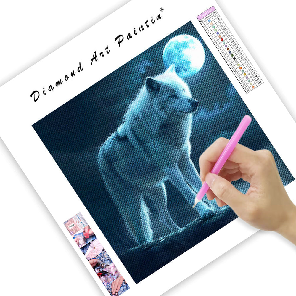 Månbelyst vit varg - Diamantmålning