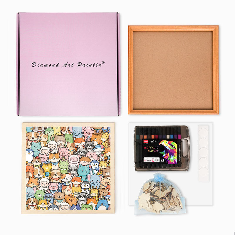 Nyckfulla djur - Träpussel att färglägga