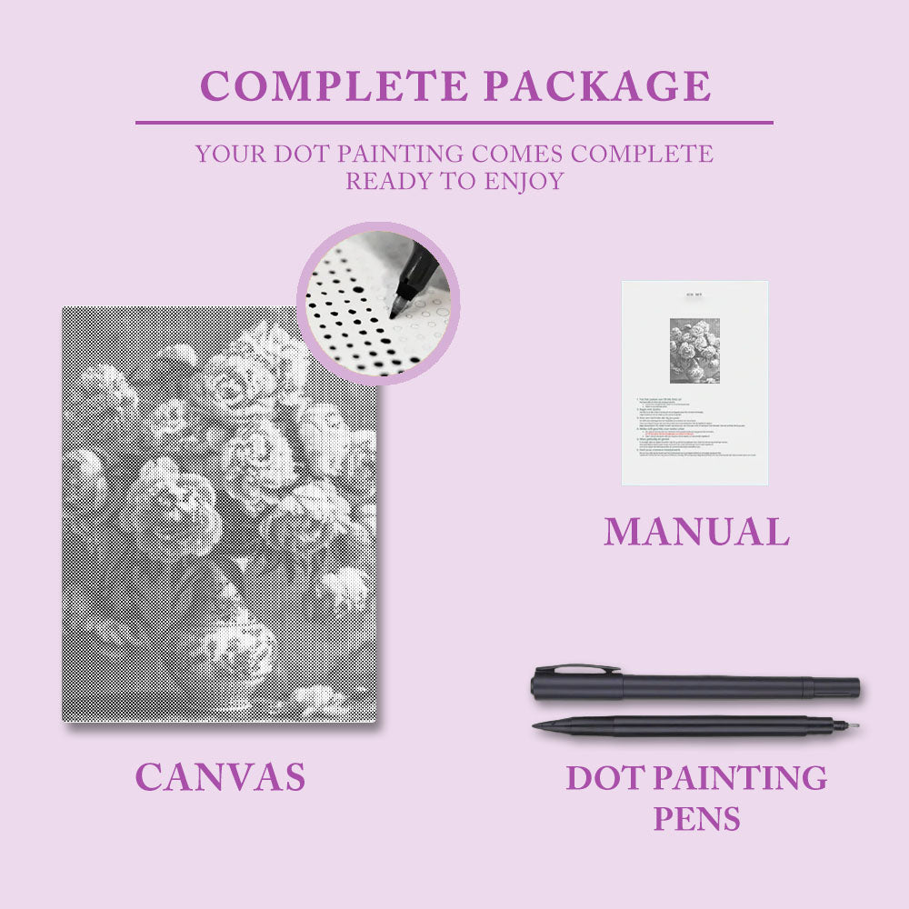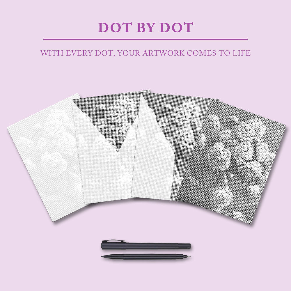 Vårt specialdesignade prickgrafitmålningsset innehåller allt du behöver för att börja skapa direkt: