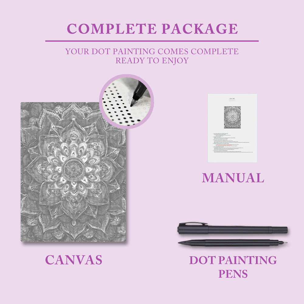 Vårt specialdesignade prickgrafitmålningsset innehåller allt du behöver för att börja skapa direkt: