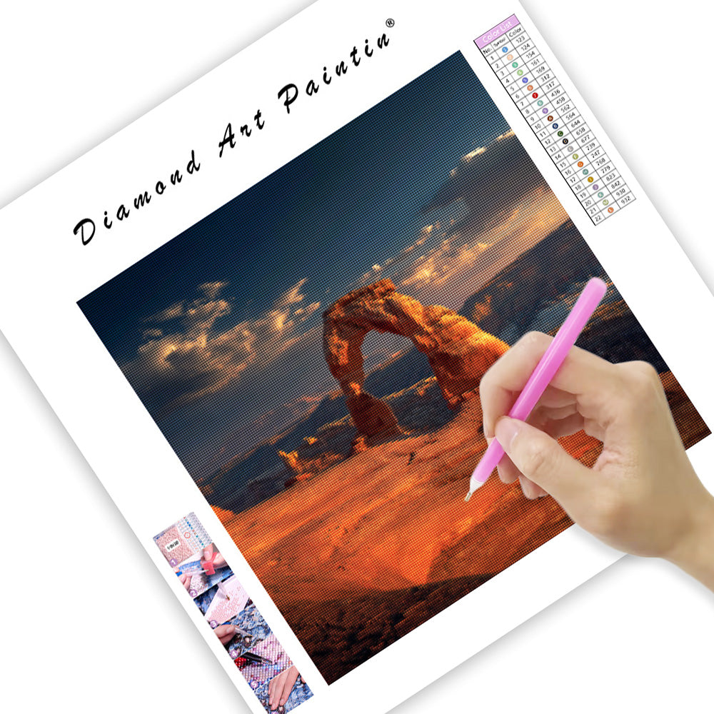 Solnedgång vid ökensandstensbåge - Diamantmålning